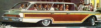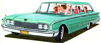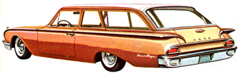 Shown here is the Tudor Ranch Wagon in two tone Beachwood Brown with a Corinthian White top. The base price of the Tudor Ranch Wagon is: $2,586. The base price of the Fordor Ranch Wagon is: 2,656.