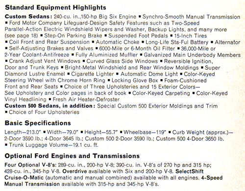 Shown here is the 4-door sedan model in Clearwater Aqua. The base price of the 4-door Custom 500 shown is: $2,594.72. The base price of the Custom 500 2-door Sedan is: $2,552.60. The base price of the Custom 2-door Sedan is: $2,440.78. The base price