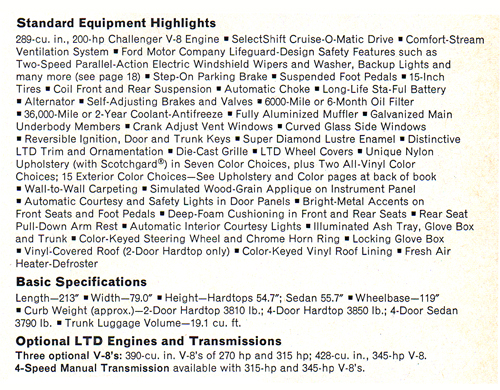 The 1967 LTD 2- & 4-dr. Hardtop & 4-dr. Sedan models.