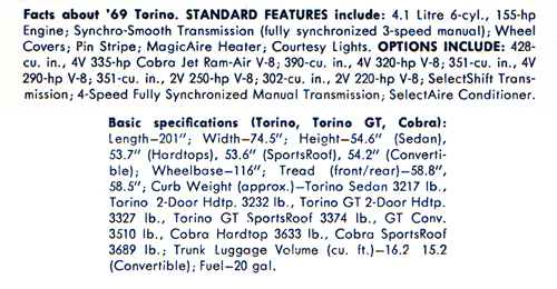 Source: Buyer's Digest of New Car Facts for 1969